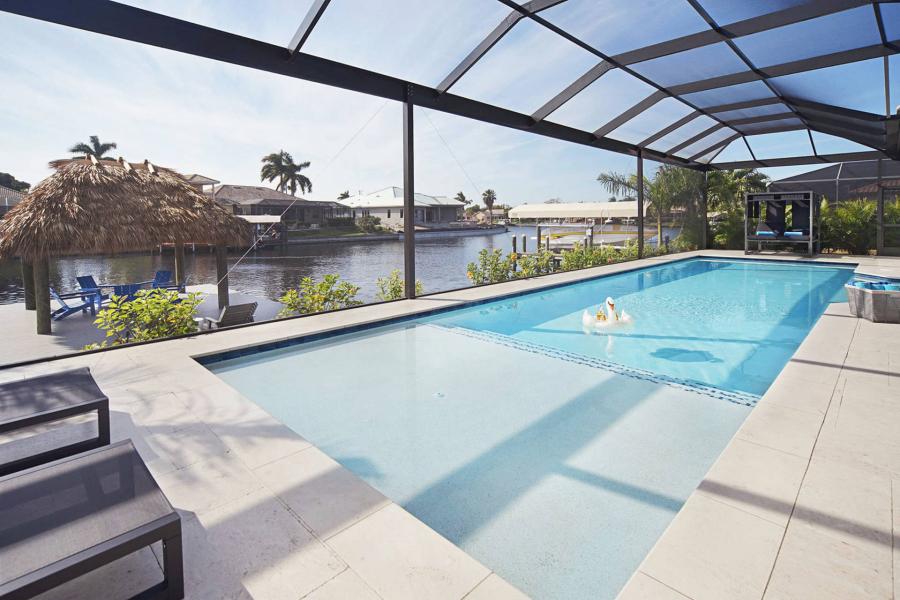 Villa Azzuri – der Name symbolisiert die Farbe blau. Genau wie das Wasser und der Himmel schimmert es in dieser Villa in den verschiedensten Blautoenen, weshalb Sie sich hier direkt im Paradies angekommen fuehlen. Das Haus liegt im beliebten Suedwesten von Cape Coral, super zentral zu Allem.
